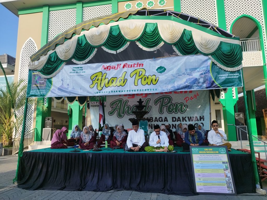 Ahad, 03 desember 2023, Lembaga Dakwah Pengurus Cabang Nahdlatul Ulama (LD PCNU) Kabupaten Ponorogo menggelar pengajian rutin Ahad Pon sekaligus launching buku khutbah yang dicetak oleh tim Aswaja Center PCNU Ponorogo. Turut hadir dalam pengajian tersebut jajaran Masyayikh Ponorogo diantaranya KH. Solekhan Al Hafidz, Kyai Muhammad Nur Sholikhin, KH. Sugeng Al Wahid, KH. Hasyim Asy’ari dan masih banyak lagi.